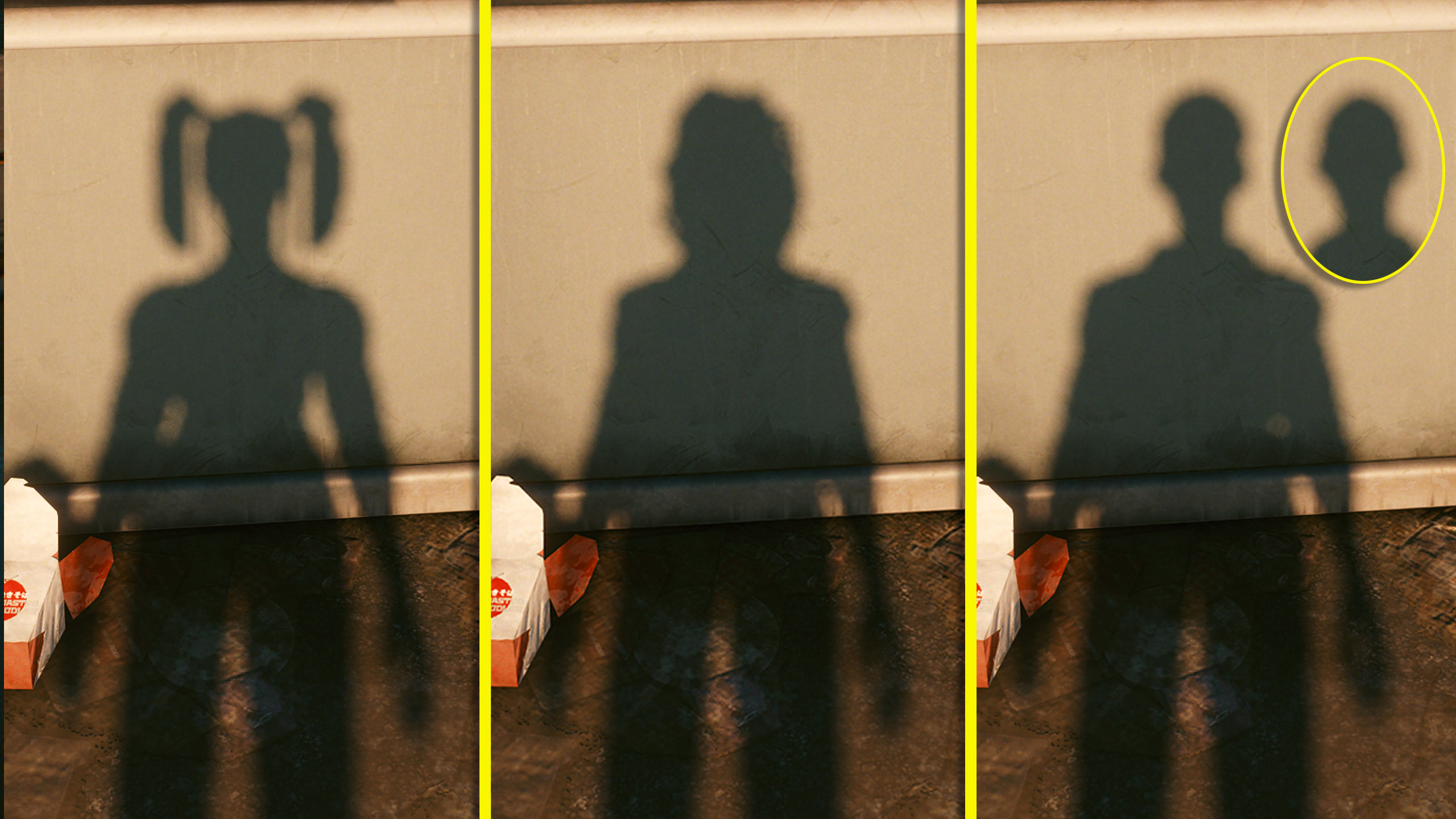 В то время как тени NPC отрисовываются корректно, главный герой V (Ви) довольствуется «стандартной тенью».