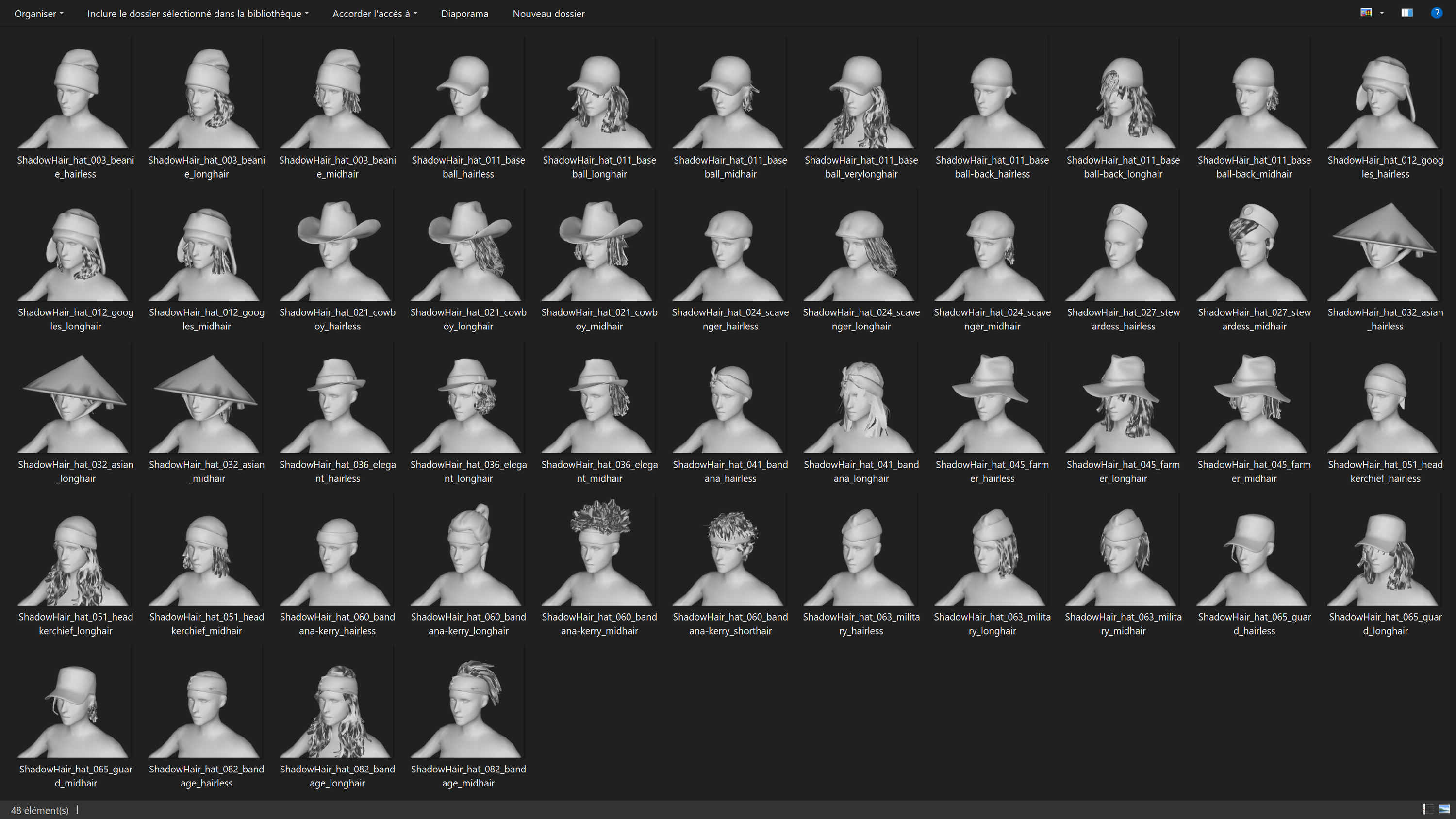 В независимости от выбранного головного убора или пышности причёски тень V остаётся прежней — голова выглядит «лысой».