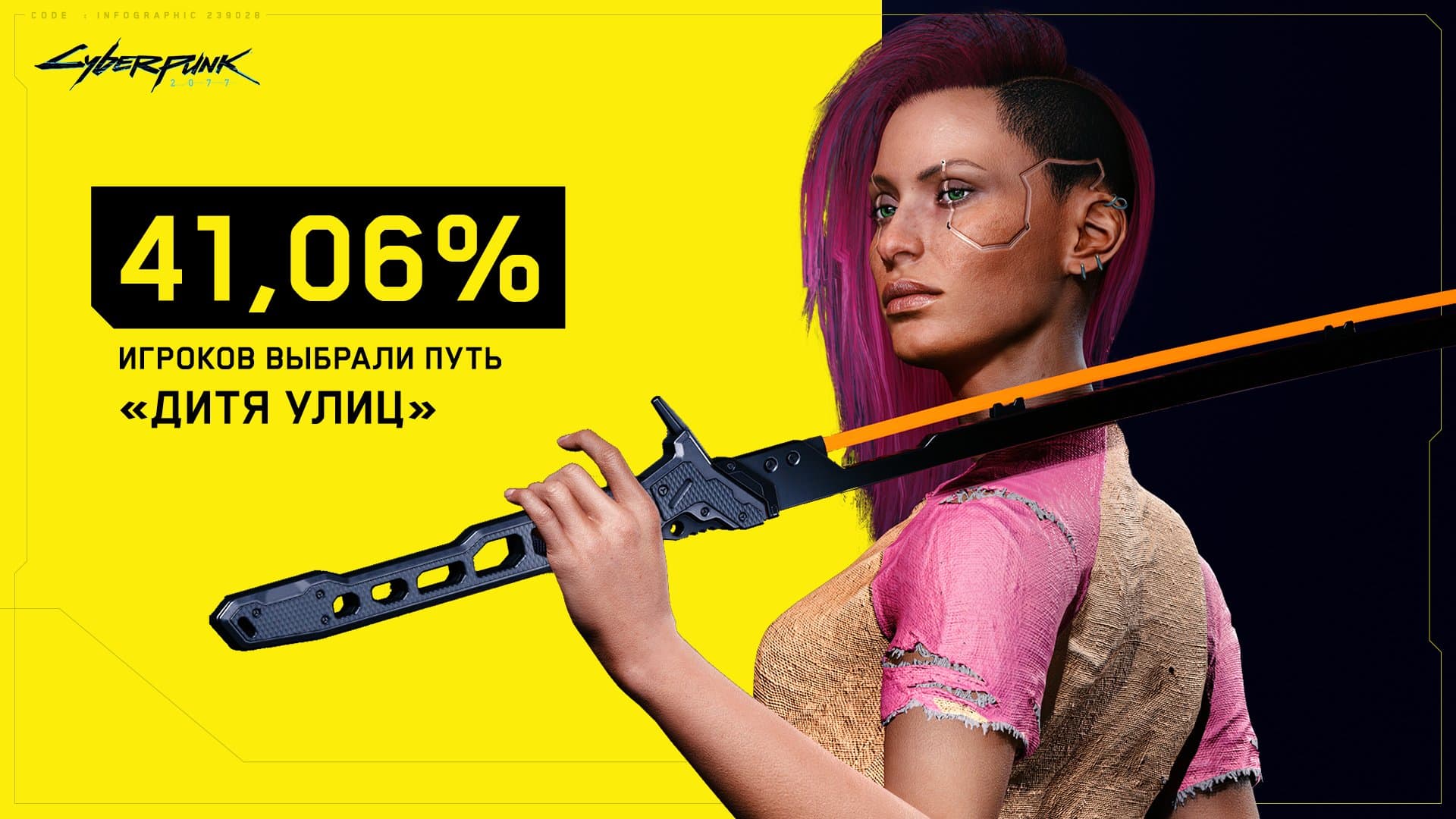 Компания CD Projekt Red сообщила о том, что большинство игроков в Cyberpunk 2077 выбирали «Дитя улиц» в качестве предыстории главного героя. Также в игре доступны предыстории «Кочевник» и «Корпорат». Вариант «Дитя улиц» выбрали 41,06% игроков.