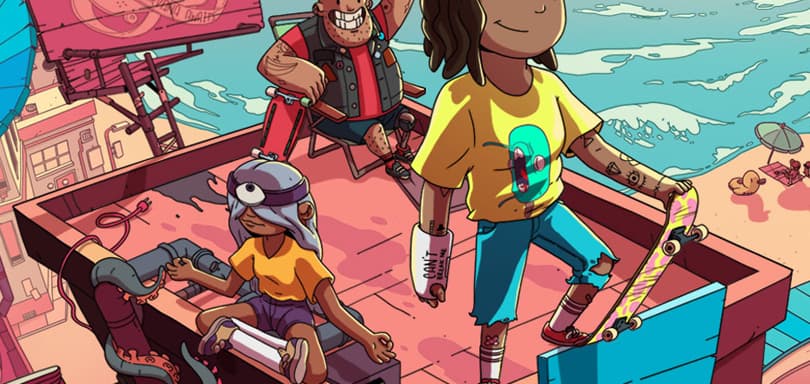 В ролике показали красочный мир и героя, который ловко рассекает на скейтборде и перелетает через препятствия.