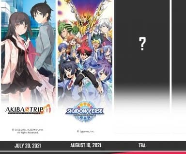 Akiba's Trip выйдет на консолях Nintendo Switch, PS4 и ПК (Steam) 20 июля 2021 года. Shadowverse должна выйти летом этого года — 10 августа на Switch. Релиз Rune Factory 5 запланирован на начало следующего года.