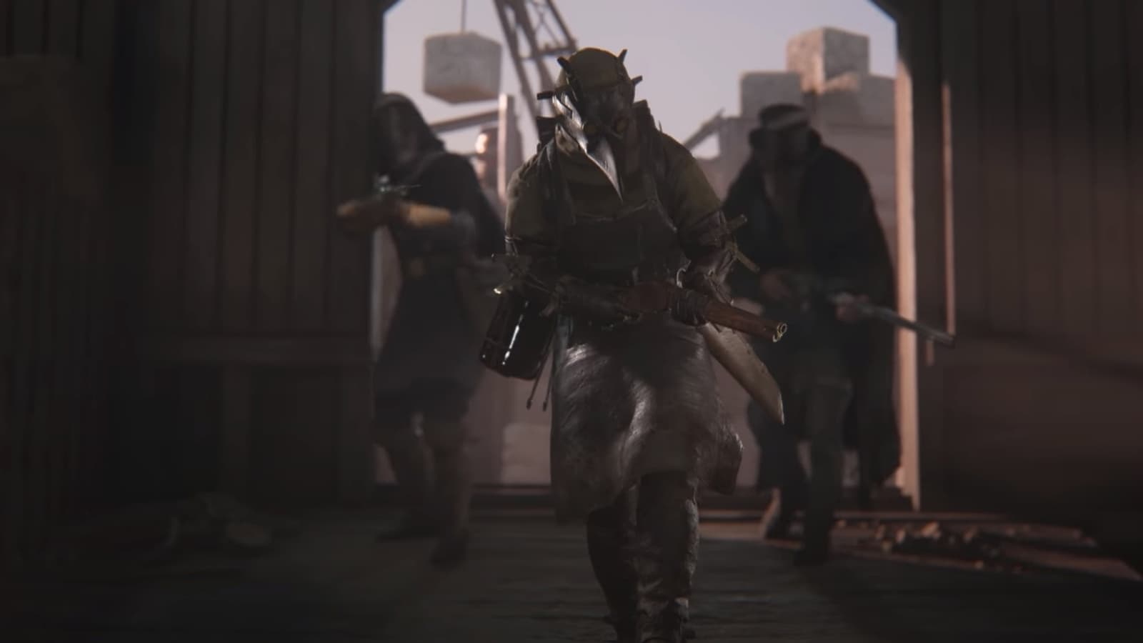 За минуту успели показать несколько боевых сцен. Одна из них проходит на лесопилке, где стоят бесхозные вагоны. Представили каменистый каньон и локацию, которая напоминает верфь.