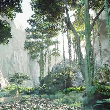 При работе Melhem Sfeir использовал пакет с тропическими текстурами, доступный в базе Epic Games. Он дублировал деревья и другие элементы, используя функцию Nanite.