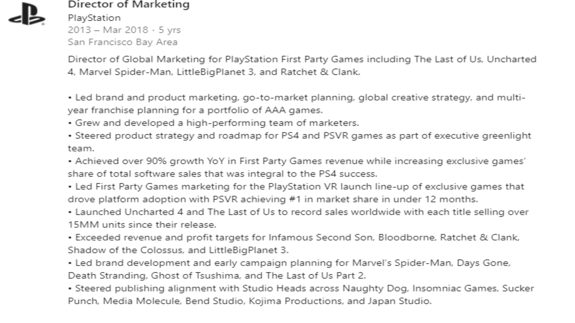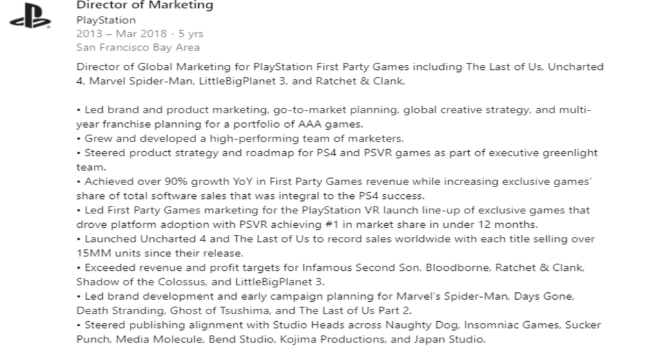 В профиле LinkedIn бывшего директора по маркетингу PlayStation Тима Камиенски опубликованы интересные данные об эксклюзивах PlayStation.