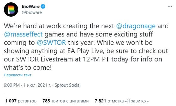 Electronic Arts сообщила, что во время EA Play не покажет материалы ожидаемых игр BioWare, а уделит внимание проектам других студий.
