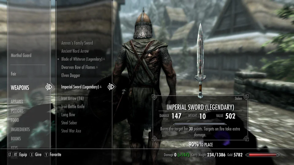 Путешествуя по миру The Elder Scrolls V: Skyrim он наткнулся на стражника, который оказался недоволен своим снаряжением. Воин пожаловался на плохой меч и сказал, что ему необходимо наточить клинок.