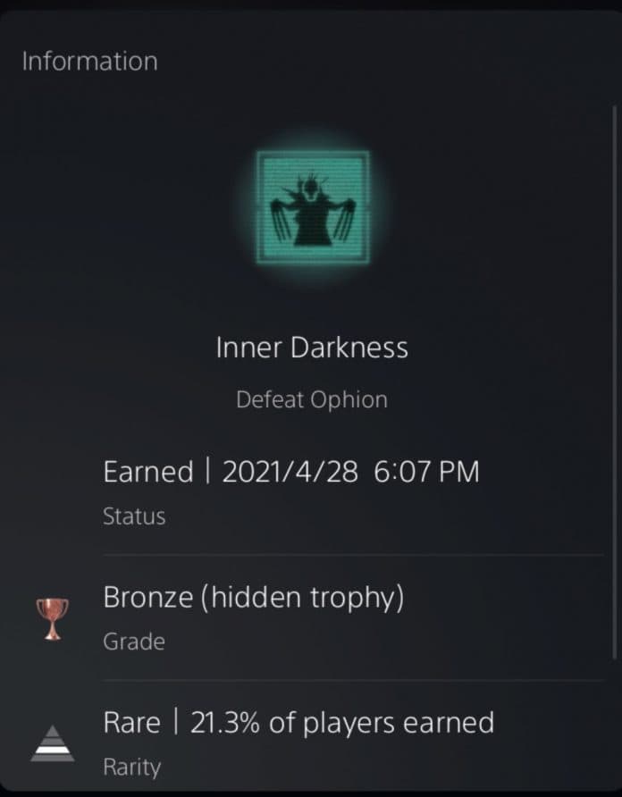 Редакция Ungeek отметила, что достижение под названием «внутренняя тьма» (в англоязычной версии Inner Darkness) набрало 21,3% пользователей. Трофей присуждается за устранение Офиона.