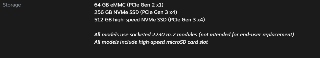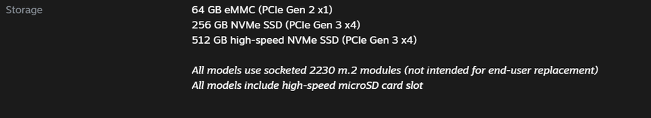 На странице с техническими характеристиками Steam Deck уточняют, что модуль M.2 2230 «не предназначен для замены конечным пользователем (прим. накопителя)».