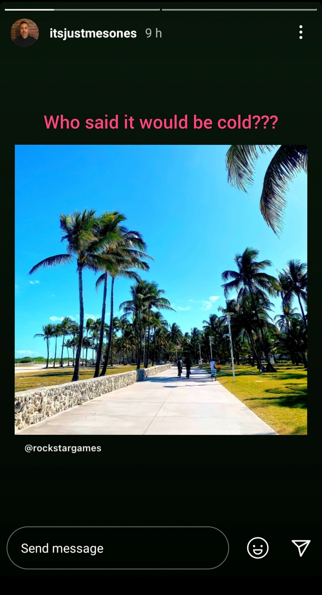Музыкальный супервайзер Тони Мезонес (Tony Mesones) поделился в Instagram фотографией, а также отметил «@Rockstar Games». Розовыми буквами он написал «Кто сказал, что будет холодно??».