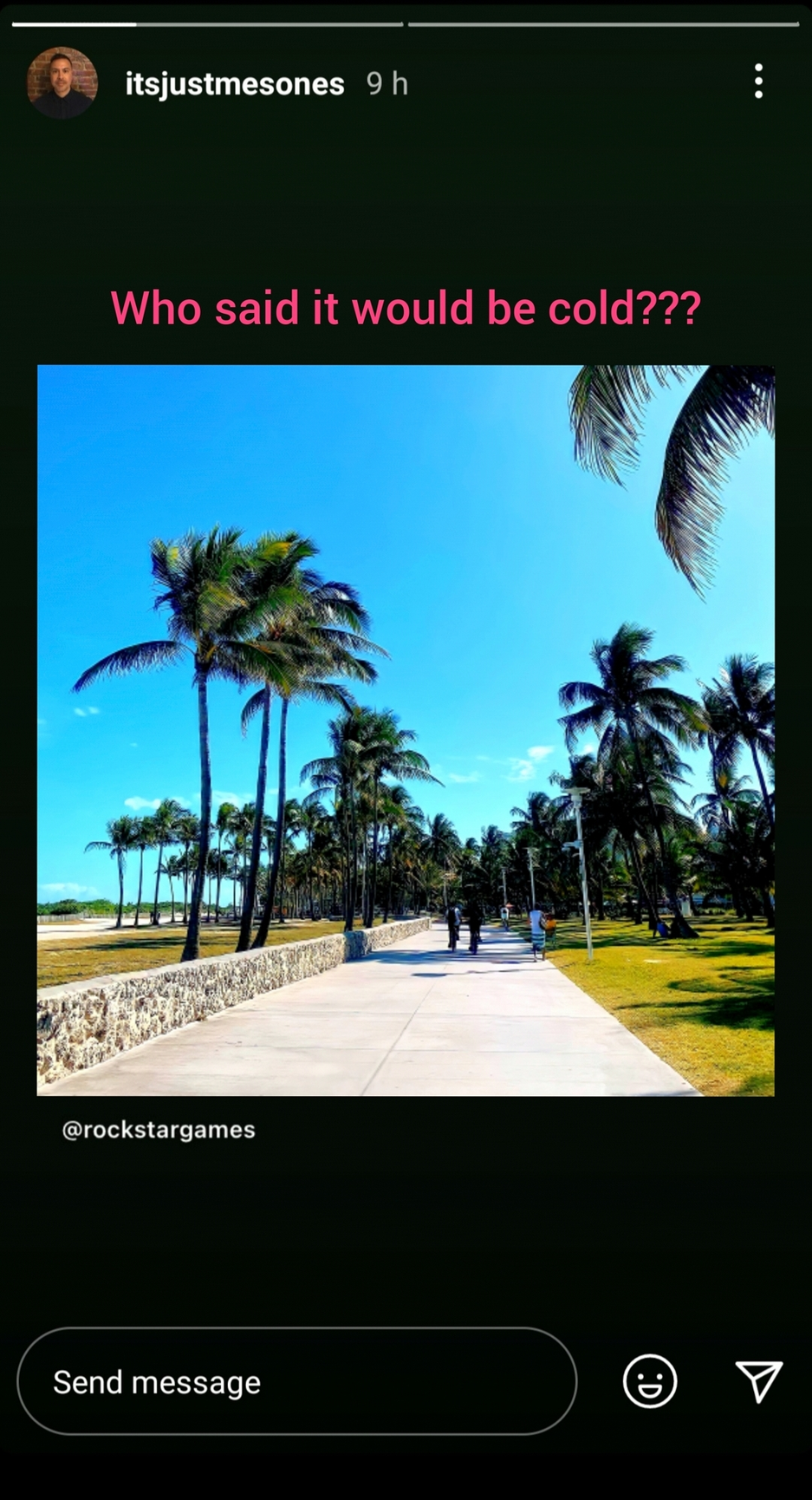 Они сразу связали цвет текста с логотипом GTA Vice City, в котором он также использовался. Также они установили, что Тони в отпуске во Флориде. Позже это фото South Beach Miami (Майами) удалили.