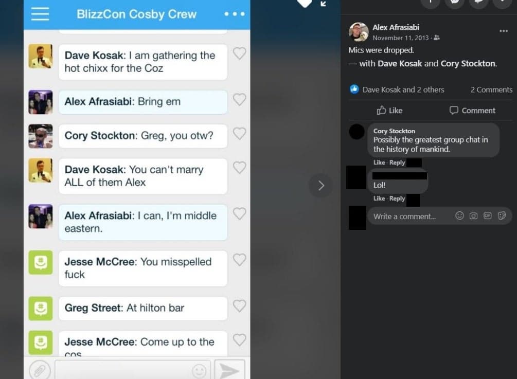 Об уходе Афрасиаби было известно, но детали происходившего в номере отеля, получившего прозвище «Люкс Косби», во время BlizzCon 2013 года публично подтверждены только сейчас.