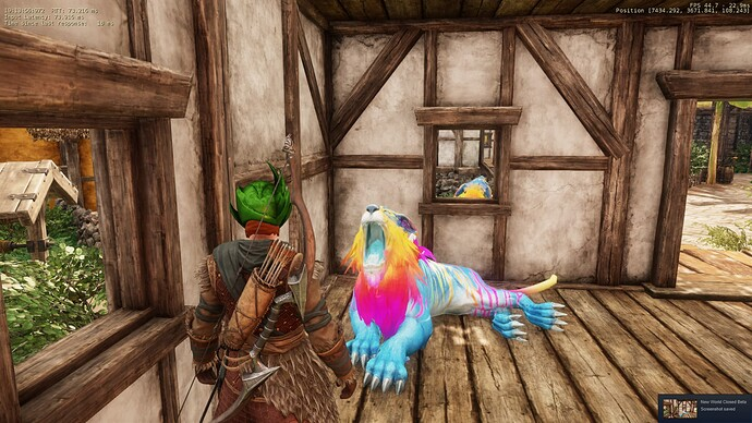 Игроки исследует новую игру Amazon. В New Wolrd они столкнулись с радужными питомцами.