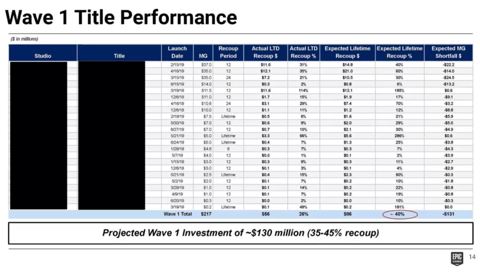 На слайде представлены «эксклюзивы первой волны». Они обошлись в 217 миллионов долларов. Примечательно, что прогнозировали получить лишь 86 миллионов. Таким образом, компания собиралась «уйти в минус» и потерять 131 миллион.