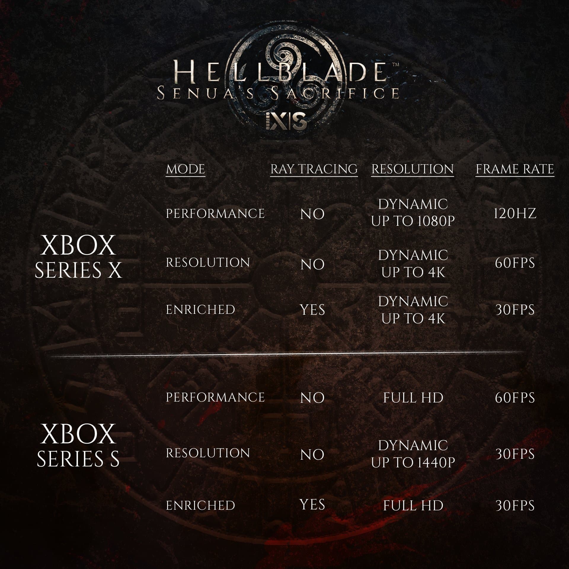 На канале Xbox появился трейлер Hellblade с показом использования производительности Xbox Series X|S. Разработчики подтвердили улучшение графики (повышено разрешение текстур, качество частиц, дальность отрисовки, более высокая детализация), добавление частоты 120 кадров в секунду, реализацию DirectX Raytracing и функция выбора глав.