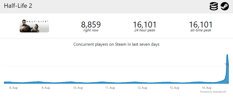 Сегодня игроки собрались, чтобы обновить рекорд по пиковому онлайну в Half-Life 2. Ранее объявили «общий сбор» 14 августа, чтобы привлечь к проекту как можно больше игроков.