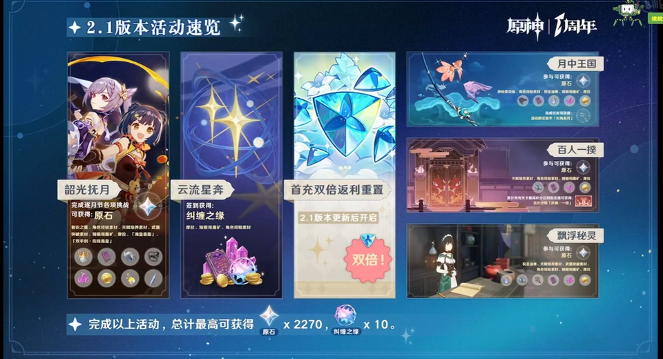 «Плохие награды. Я приму всё, что удастся получить. Хотелось бы, чтобы они [награды] были более щедрыми. Самое болезненное, что в lantern rite [Обряд Фонарей, прошедшее событие в Genshin Impact] было больше наград, чем здесь [годовщина релиза]».