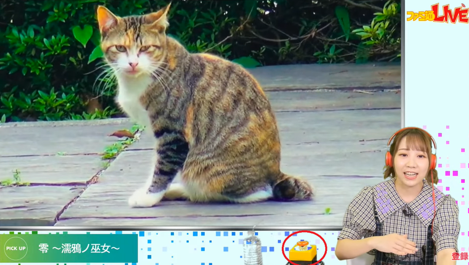 Гостем этого выпуска Famitsu LIVE стала японская певица и актриса озвучивания Сиина Нацукава (Shiina Natsukawa). Девушке дали немного поиграть. Организаторы установили «тревожную кнопку», которая вызывает котика.