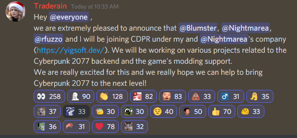 Они будут заниматься поддержкой модов для Cyberpunk 2077 и бэкендом. Моддеры присоединяются к CD Projekt через компанию Yigsoft, которую основал Traderain и Nightmarea.