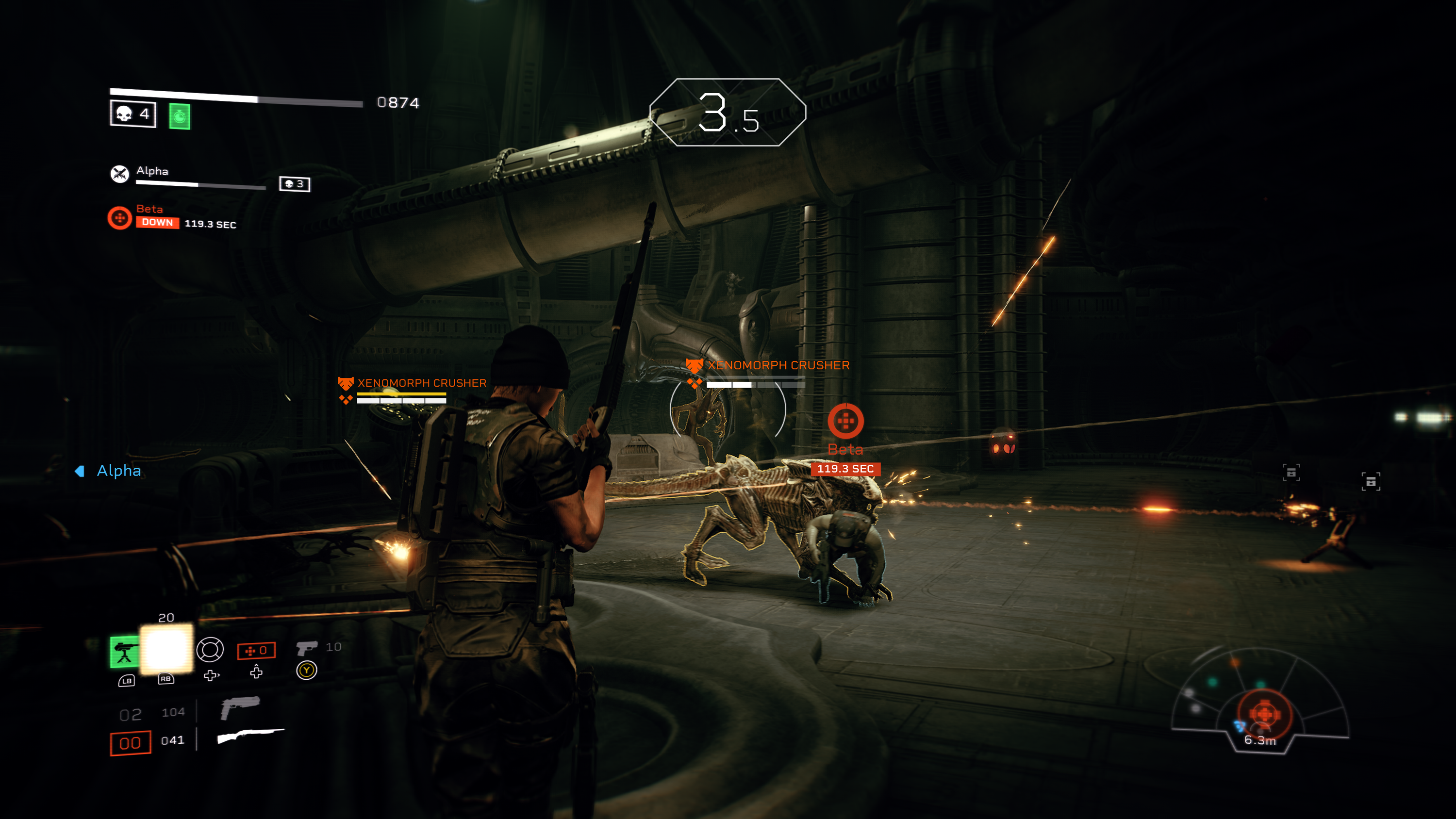Играя в одиночку и игнорируя товарищей, вы будете постоянно сталкиваться с дефицитом патронов, здоровья или всего сразу. Вас легко окружат и забьют ксеноморфы. Чем меньше людей в отряде, тем ниже шансы на успех операции. На более высоких уровнях сложностей также добавляется дружественный огонь, заставляя аккуратней выбирать цели и думать перед тем, как нажимать спусковой крючок.