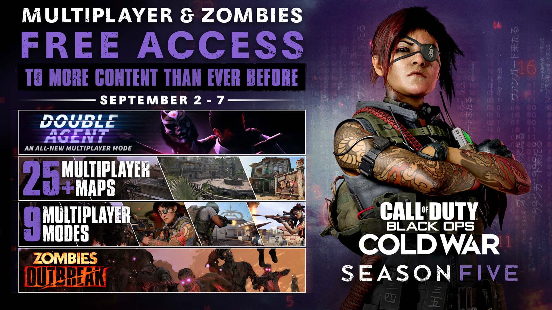 Уже сегодня, 2 сентября в 20:00 по московскому времени многопользовательские и кооперативные режимы в Call of Duty: Black Ops Cold War станут полностью бесплатными для любого желающего. Игроки смогут побегать и пострелять по 25 картам, повоевать с ордами зомби, а также попытаться раскрыть предателя в новом режиме «Двойной агент». Акция продлится до 7 сентября, 20:00 по Москве.