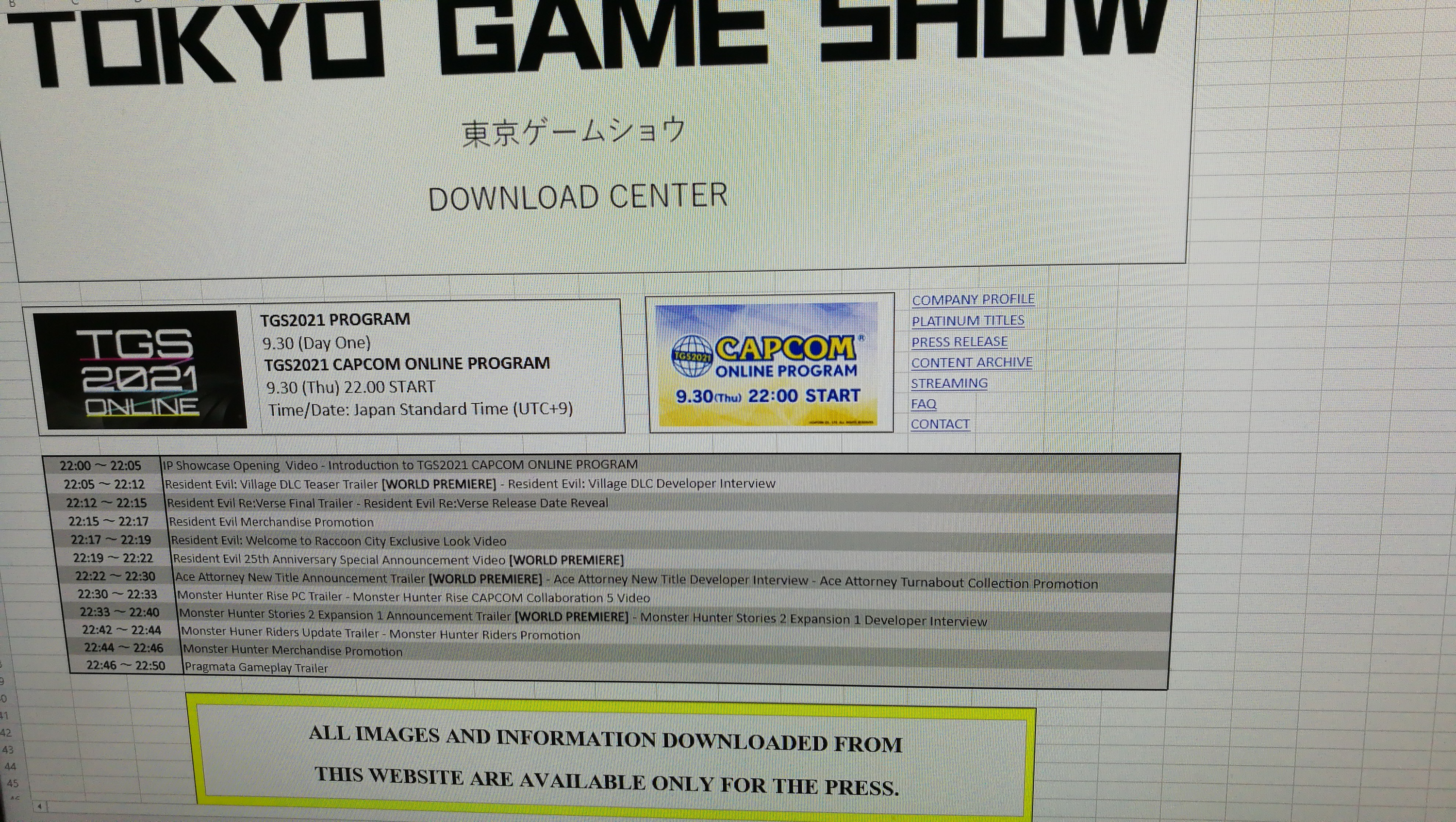 Судя по расписанию, презентация CAPCOM на TGS 2021 пройдёт 30 сентября (время 22-22:50, совпадает с «фото расписания»).