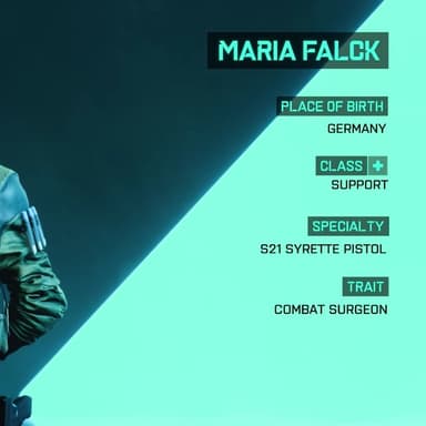 Мария Фальк — один из специалистов Battlefield 2042. Её оружие, стреляющее шприцами, могло исцелять союзников и поднимать на ноги поверженных на расстоянии. Вторая способность оказалась настоклько мощной, что её устранили и оставили только исцеление.