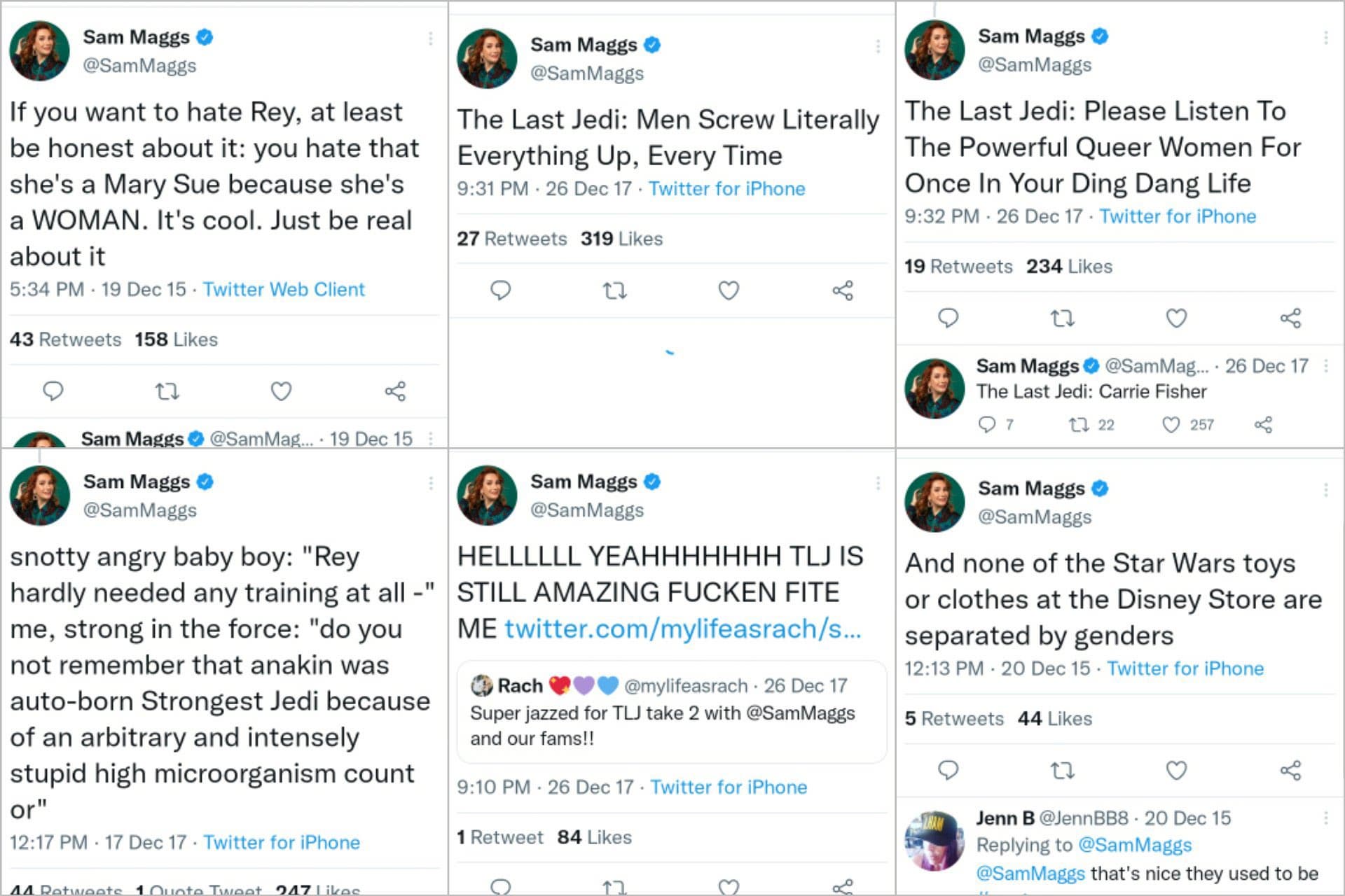 Впрочем, достижения Мэггс в игровой индустрии меркнут на фоне ее активной гражданской позиции. Сэм Мэггс является яростной феминисткой и ненавидит патриархат. Она также в свое время даже давала интервью канадскому каналу, в котором утверждала, что игроков насилуют в Grand Theft Auto Online и они ничего не могут с этим поделать.
