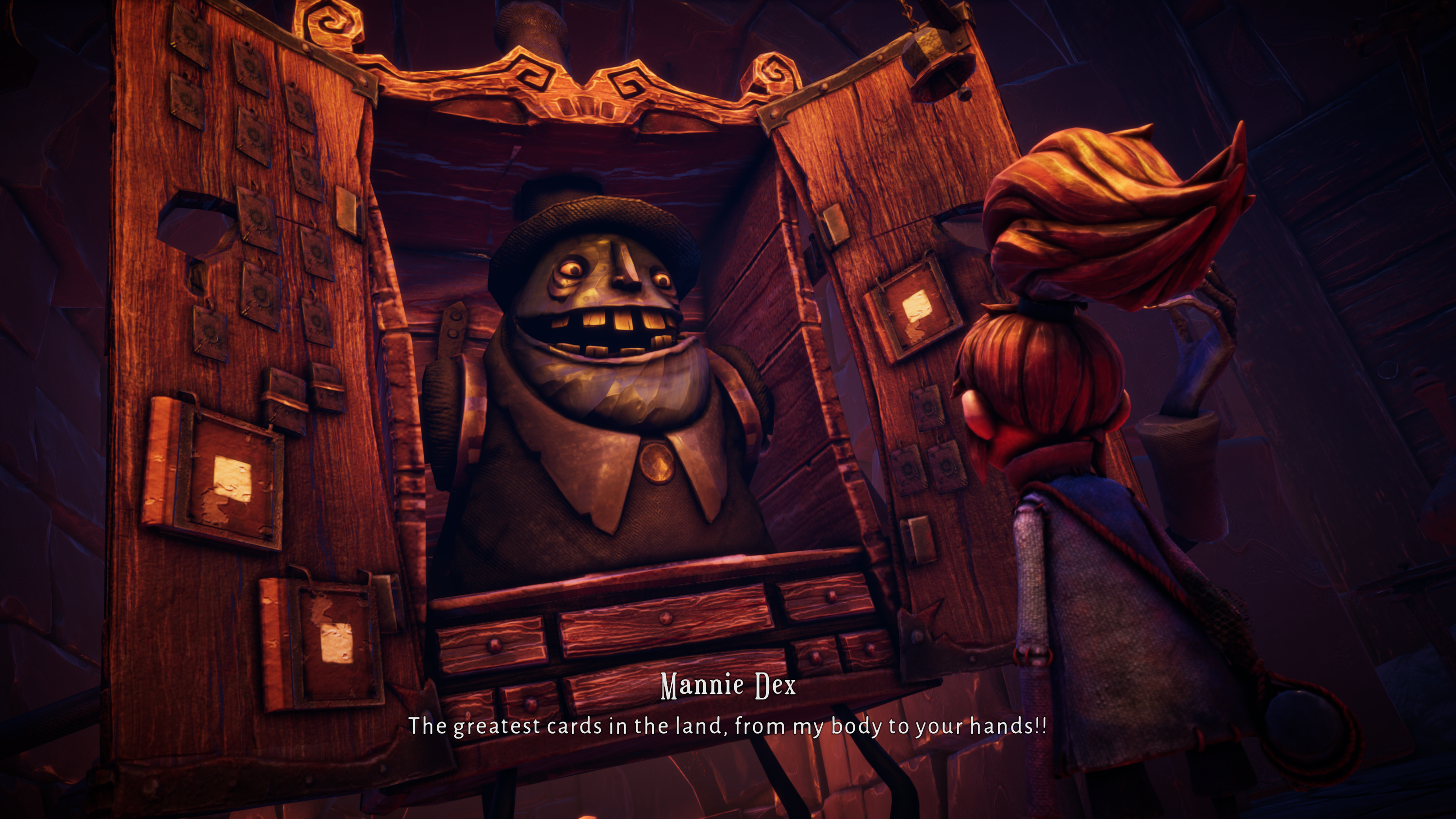 Новые карты для колоды становятся доступным по мере развития сюжетной линии, но их также можно приобретать у местного торгаша. Чем больше золотых монет оставит в его лавке Ивен, тем больше карт он сделает для нее доступными. Что-то вроде программы привилегий для постоянных клиентов. У торгаша даже есть карты, которые ускоряют движение фигур по полю в уже вышеупомянутых настольных играх. И никаких микротранзакций!
