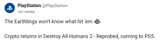 В Twitter PlayStation опубликовали запись: «Крипто возвращается в Destroy All Humans 2 - Reprobed на PS5».
