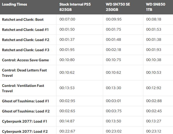 Для тестов взяли Western Digital SN750 SE 250 ГБ (3 200 МБ/с., 58% от требуемой), а также Western Digital SN850 1 ТБ, который разрекламировал сам архитектор PlayStation 5 Марк Церни (Mark Cerny).