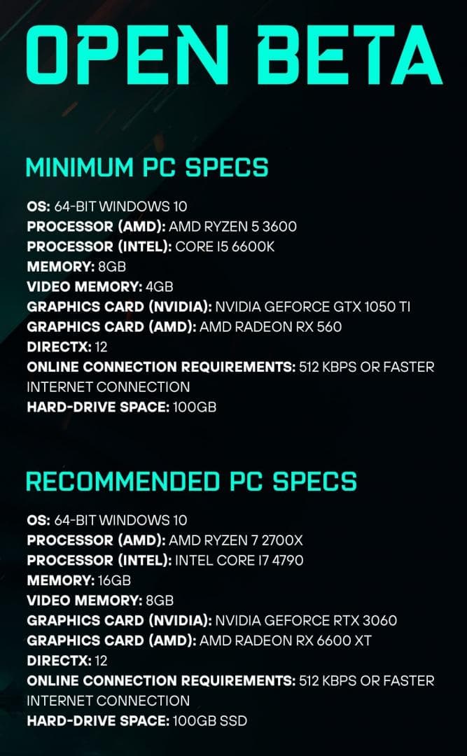 Cистемные требования открытого бета-тестирования: