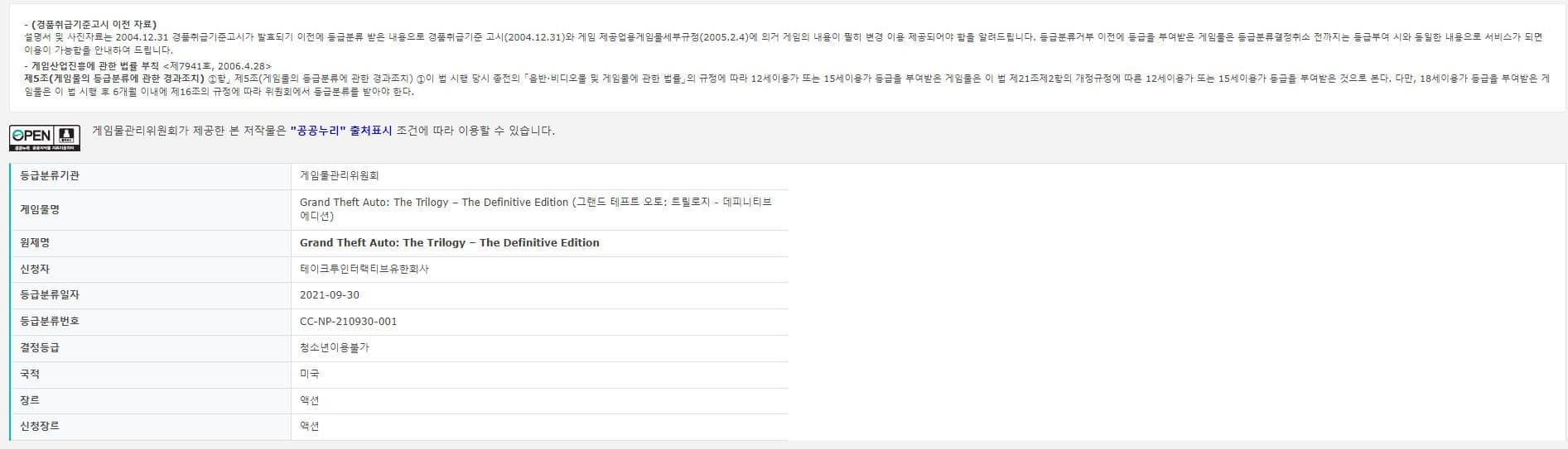 Корейские цензоры из Комитета по рейтингу и администрированию игр (GRAC) 30 сентября присвоили возрастной рейтинг обновленной трилогии Grand Theft Auto. По документам сборник проходит под названием Grand Theft Auto: The Trilogy – The Definitive Edition.