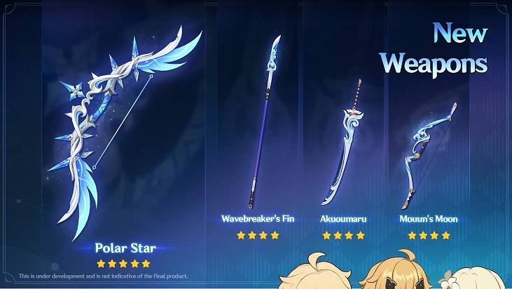 - Новый персонаж Тома (Thoma). Редкость этого пиро-героя оценили в 4 звезды. На постере красуются Ху Тао (Hu Tao) и Тарталья («Чайльд», Tartaglia).