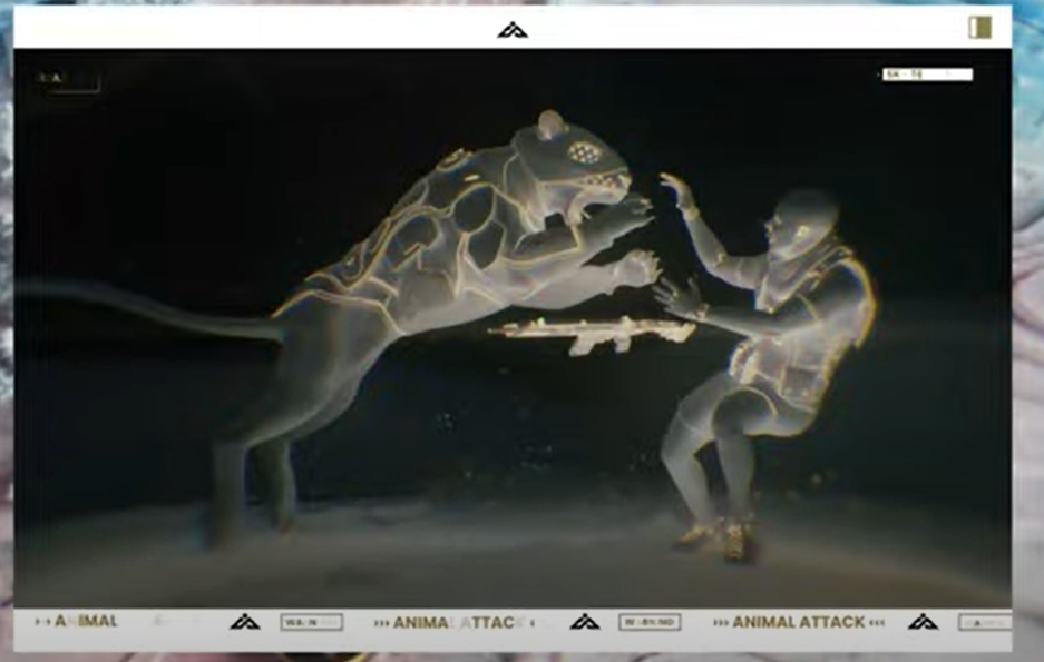 Показывают такую карту со стрелками на ней, а также нападение на человека существа, похожего на пантеру.
