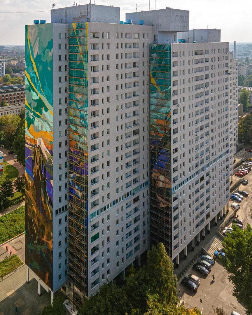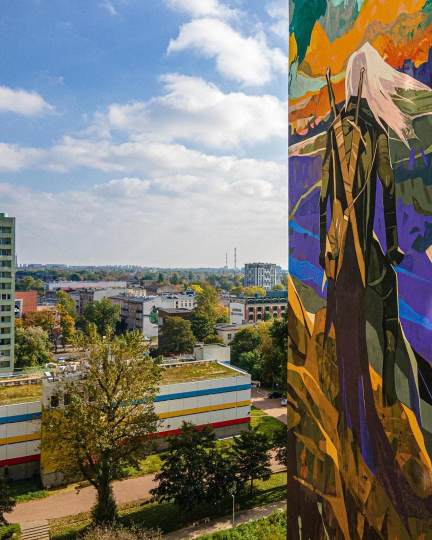 В сентябре сообщалось, что польском городе Лодзь создаётся мурал, вдохновленный вселенной «Ведьмака». Прошло меньше месяца, и теперь можно увидеть, как выглядит фреска.