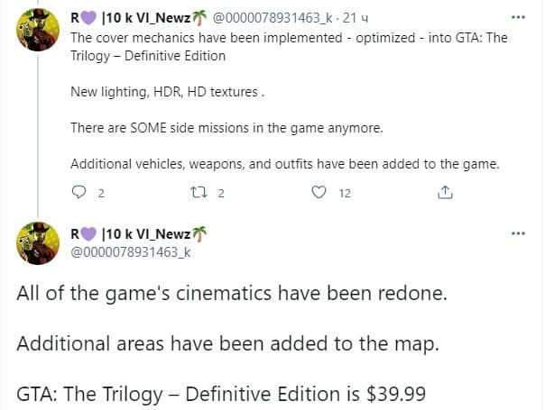 Также найдены некоторые подробности об играх, но стоит заметить, что информацию представили малоизвестные инсайдеры, связанные с играми Rockstar. Поэтому воспринимать её стоит, как слухи.