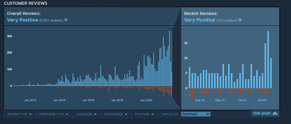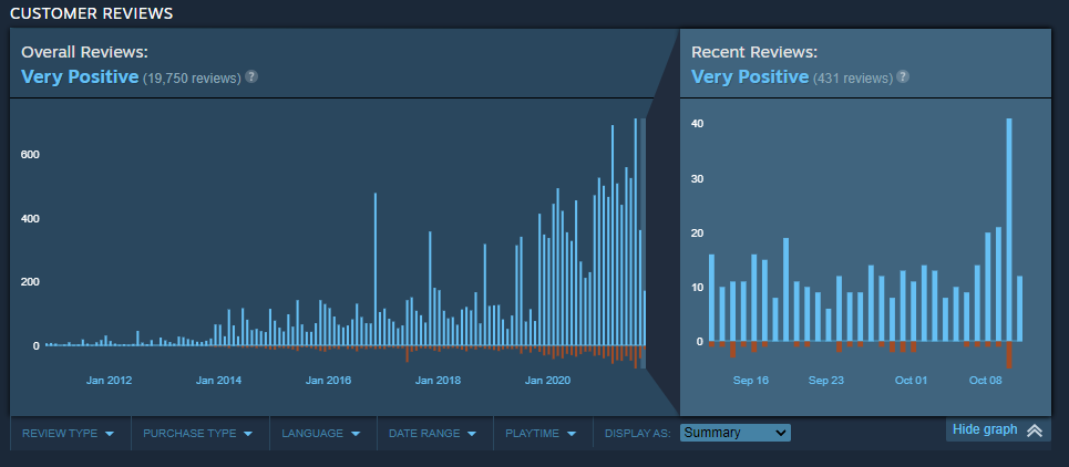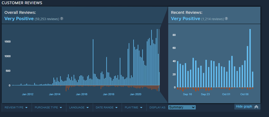 Вот так выглядит график отзывов Grand Theft Auto San Andreas в Steam: