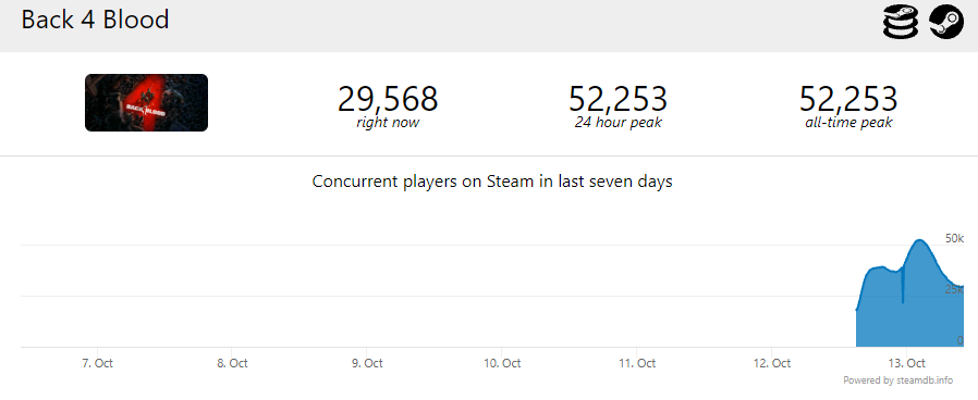 Если брать для сравнения «обычный» пиковый онлайн, то Back 4 Blood побила рекорд Left 4 Dead 2 (49 193 игрока в августе 2021 года).