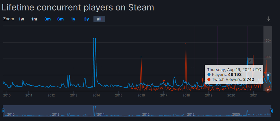 Однако, рекорд Leaft 4 Dead 2 с 162 399 игроками, не удалось побить. Справедливости ради, необходимо отметить, что проводилась бесплатная раздача L4D2, поэтому у игры в определённые моменты наблюдался «взрывной рост» онлайна.