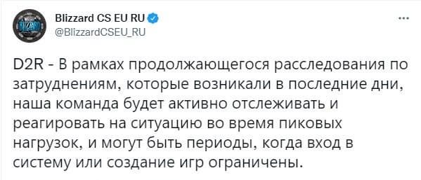Ранее на этой неделе сообщалось о проблемах с серверами Diablo 2 Resurrected. Ошибки до сих пор не устранены и на официальных каналах Blizzard появилось ещё одно сообщение - студия осведомлена о проблемах и расследует причины затруднений.