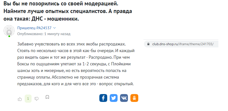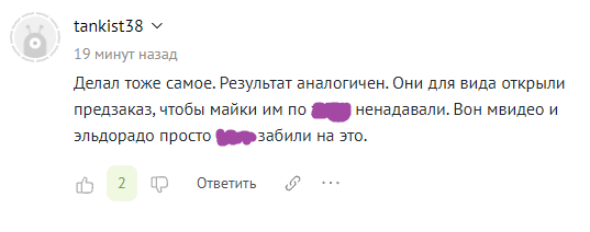 Лишь 2 комментатора похвастались, что купили консоль. Это единственные их комментарии, один профиль существует 8 месяцев, а другой 3 года. На публикацию «доказательства покупки» (скриншота с товаром в профиле) у пользователя ушёл почти целый час.
