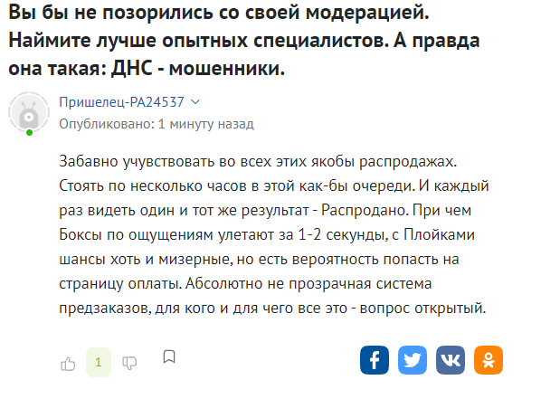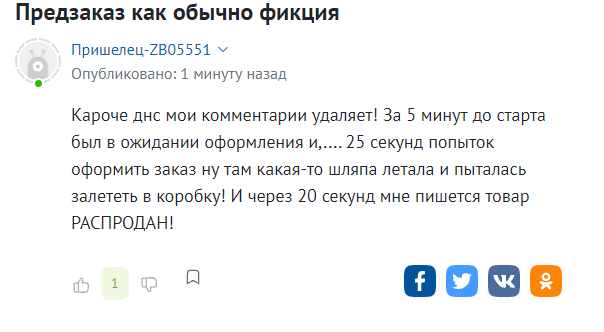По какой-то причине с сайта пропадают темы с негативными комментариями. Также отмечают, что некоторые другие торговые сети даже не удосужились открыть предзаказ.