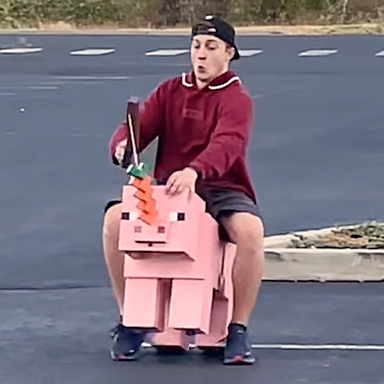 Автор YouTube-канала Electo смастерил ездовую свинью из Minecraft. Она получила имя «Hamborghini» («Ветчиргини», Ветчина + Ламборгини).