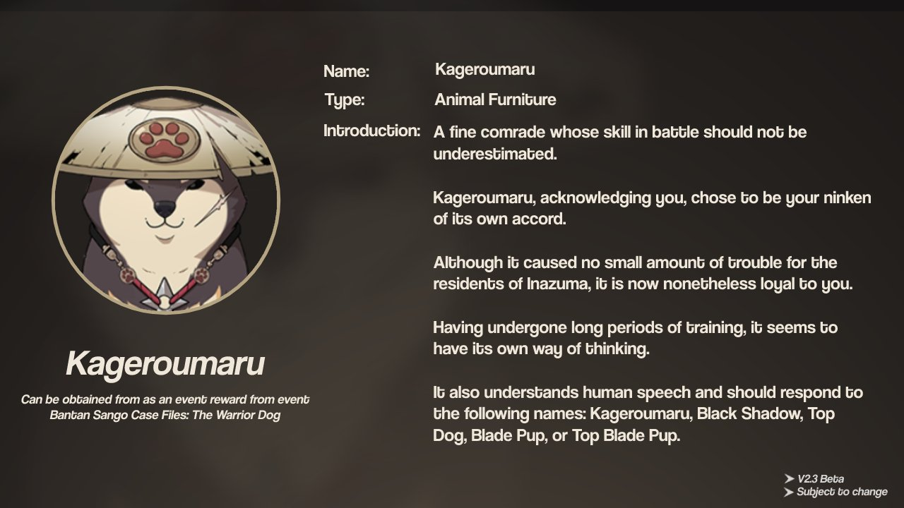Похоже, что игрокам предстоит вести расследование. В конце выдадут существо Kageroumaru (影狼丸, Кагероумару), это не питомец. Вероятно, декор для «Чайника» (личный мир игрока в Genshin Impact).