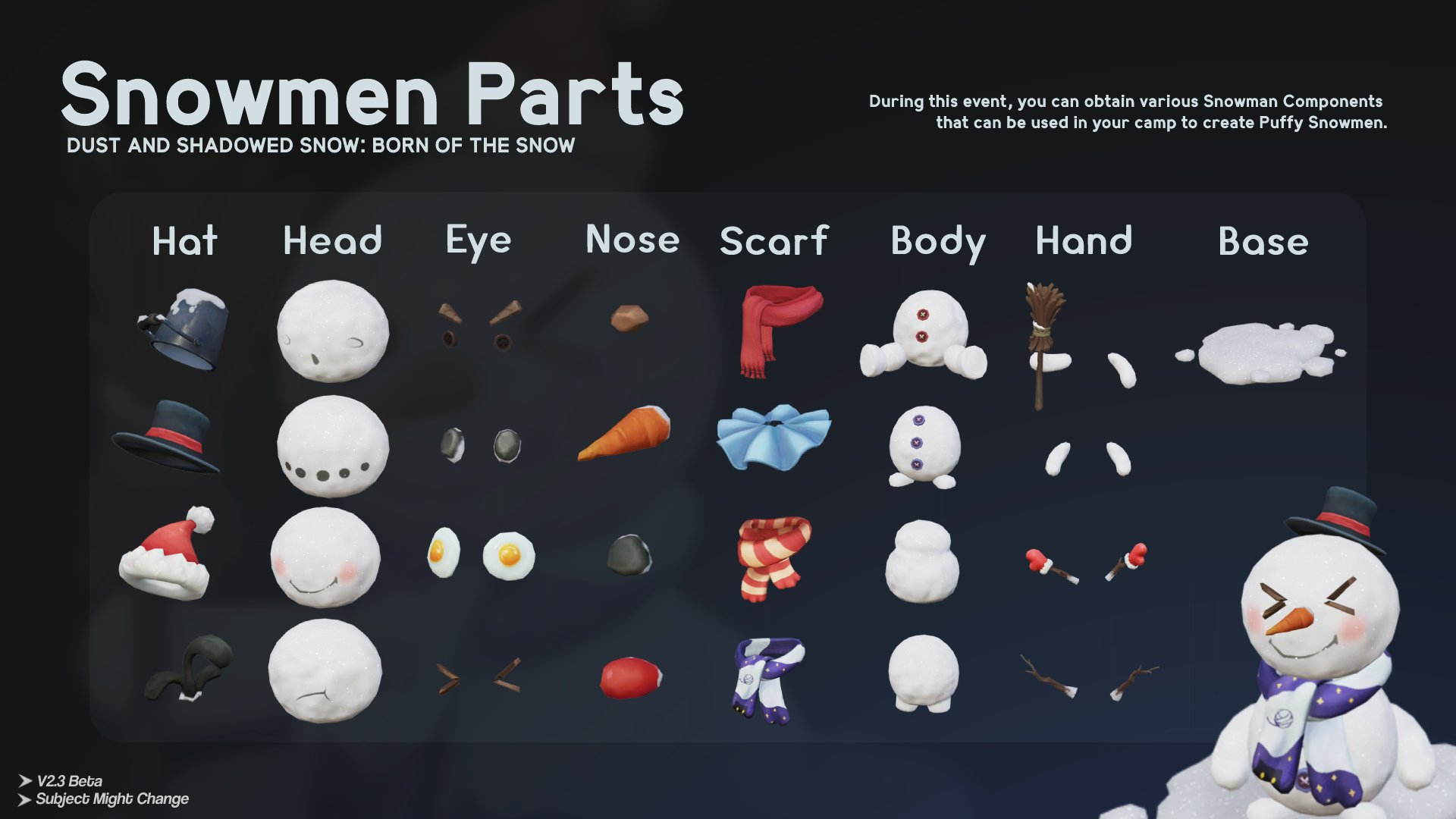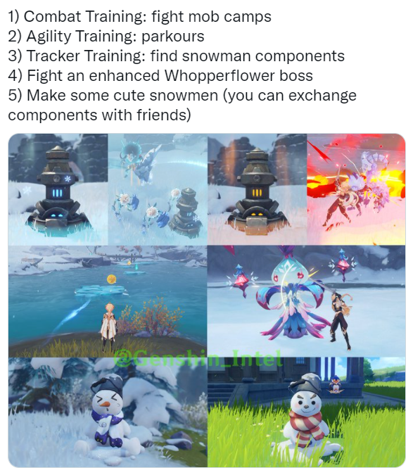 Игроков ожидают тренировки и поиск компонентов для снеговика, битва с боссом и непосредственно сам процесс постройки снеговика.