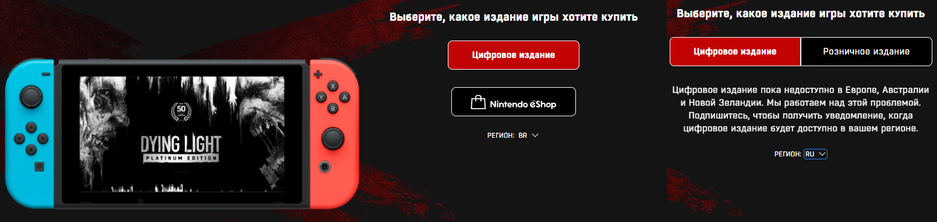 На форуме Reddit в ветке посвящённой Dying Light обратили внимание на то, что версия игры для Nintendo Switch доступна не во всех регионах.