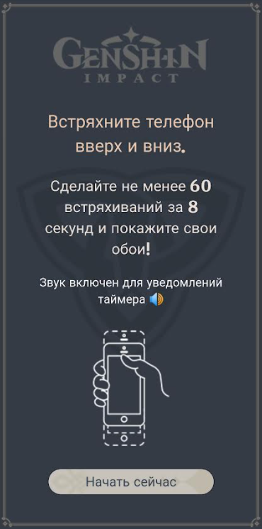 Правила игры просты: необходимо в течение 8 секунд встряхнуть смартфон, а соответственно и Паймон, не менее 60 раз.