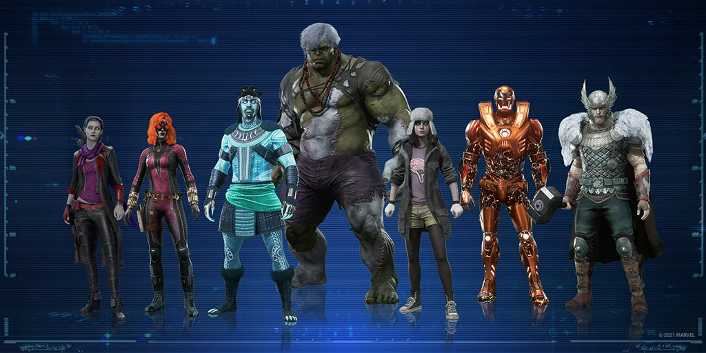 Тор, Железный Человек, Кейт Бишоп, Халк, Мисс Марвел, Чёрная Пантера, Чёрная Вдова.