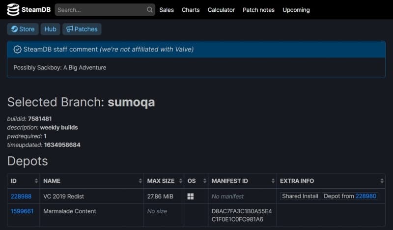 В базе данных Steam обнаружен продукт с кодовым названием «marmalade», который фигурировал в сентябрьской утечке GeForce Now – Sackboy: A Big Adventure была отмечена этим термином. Кроме того, на одной из вкладок можно найти аннотацию «sumoqa», которая, скорее всего, относится к команде Sumo Digital.