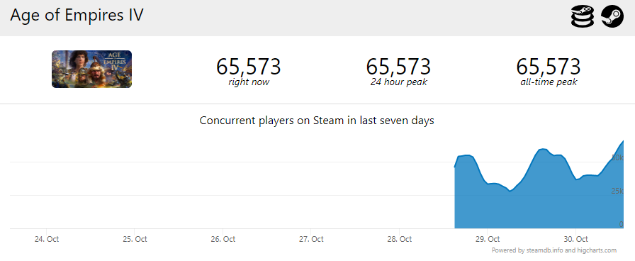Игра вышла 28 октября и могла похвастаться пиковым онлайном в 54 тысячи игроков. Наступили выходные и количество игроков постепенно увеличивается